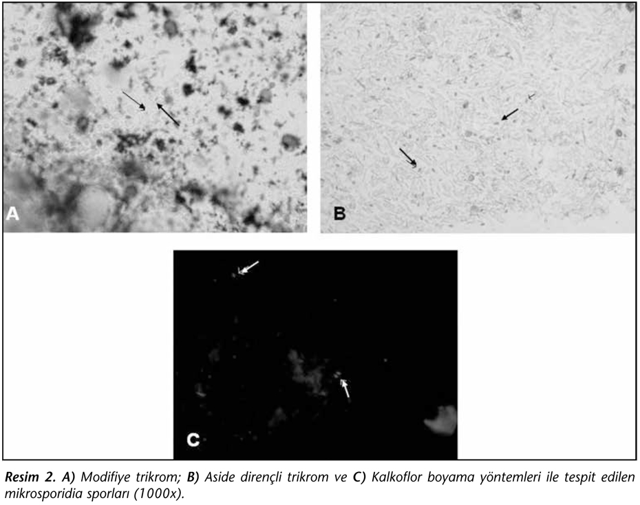 Anahtar sözcükler: Encephalitozoon intestinalis; Enterocytozoon bieneusi; mikrosporidia; immün süpresif hasta; tanı.