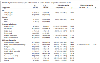 Anahtar kelimeler: Yoğun bakım ünitesi; mortalite; risk faktörü; karbapenem direnci; Klebsiella pneumoniae.